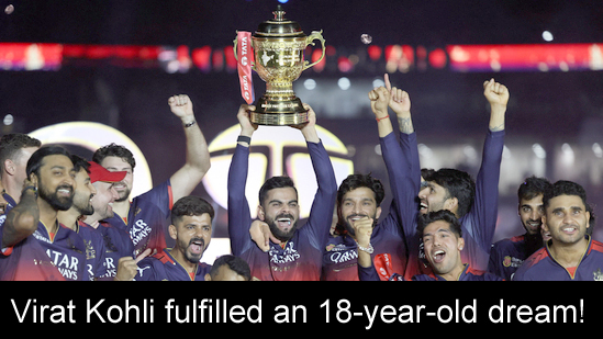 The team that comes to mind when you hear the name Virat Kohli is RCB. Similarly, the name that comes to mind when you hear RCB is Kohli. His play, consistency, and fighting spirit are the inspiration for the team. Now, after winning the title, this bond has become even stronger.